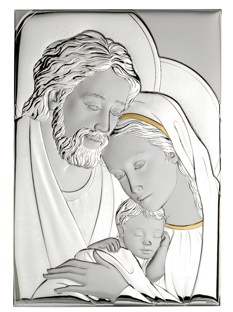 Produs în stil autentic bizantin, această icoană reprezintă o copie a originalului. Este fabricată în Italia, în ateliere cu tradiţie în iconografie. Icoana este produsă dintr-o parte metalică placată cu argint de puritate 999.9 acoperită cu un lac protector pentru a nu se deteriora în timp, suprapusă pe un suport de lemn. Mărimea : (10x12cm)