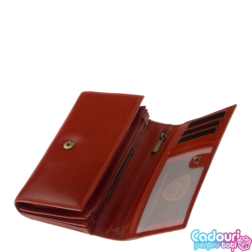 Un portofel premium cu aspect de lux este accesoriul de care are nevoie fiecare damă. A fost confecţionat din cele mai bune materiale pentru a se obţine un portofel cu un design deosebit având o rezistenţă cât mai bună. Este fabricat din piele naturală de bovine. Ambalăm portofelele într-o cutie cadou personalizată.
