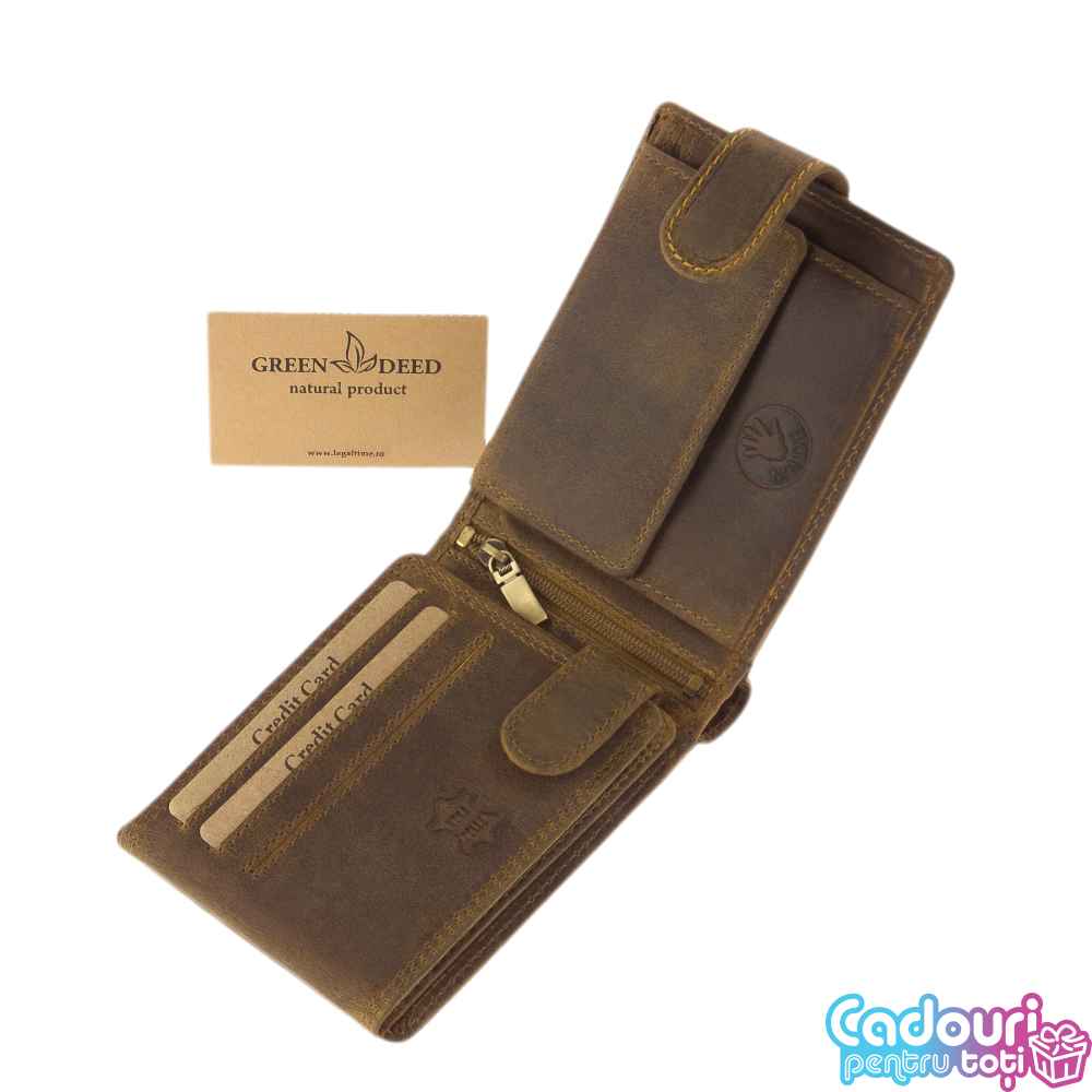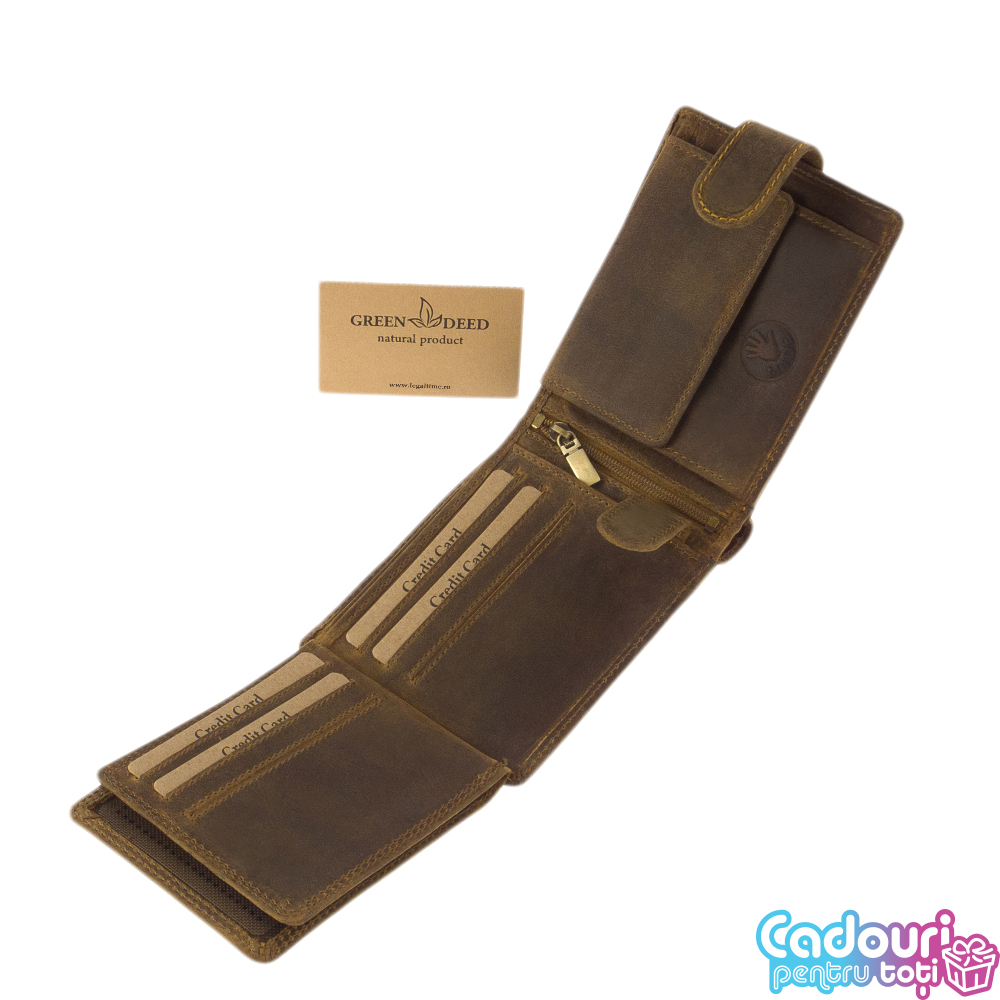 Un portofel premium cu aspect de lux este accesoriul de care are nevoie fiecare bărbat. A fost confecţionat din cele mai bune materiale pentru a se obţine un portofel cu un design deosebit având o rezistenţă cât mai bună. Este fabricat din piele naturală de bovine. Ambalăm portofelele într-o cutie cadou personalizată. Dimensiuni: 12x10 cm.