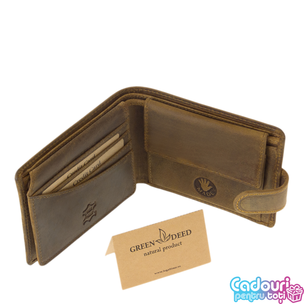 Un portofel premium cu aspect de lux este accesoriul de care are nevoie fiecare bărbat. A fost confecţionat din cele mai bune materiale pentru a se obţine un portofel cu un design deosebit având o rezistenţă cât mai bună. Este fabricat din piele naturală de bovine. Ambalăm portofelele într-o cutie cadou personalizată. Dimensiuni: 12x10 cm.