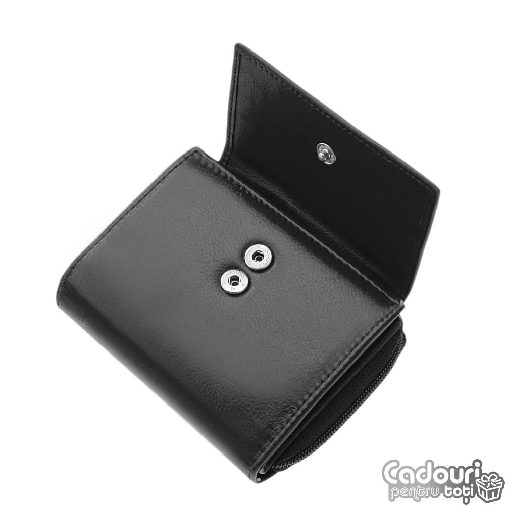 Un portofel premium cu aspect de lux este accesoriul de care are nevoie fiecare damă. A fost confecţionat din cele mai bune materiale pentru a se obţine un portofel cu un design deosebit având o rezistenţă cât mai bună. Este fabricat din piele naturală de bovine. Ambalăm portofelele într-o cutie cadou personalizată.