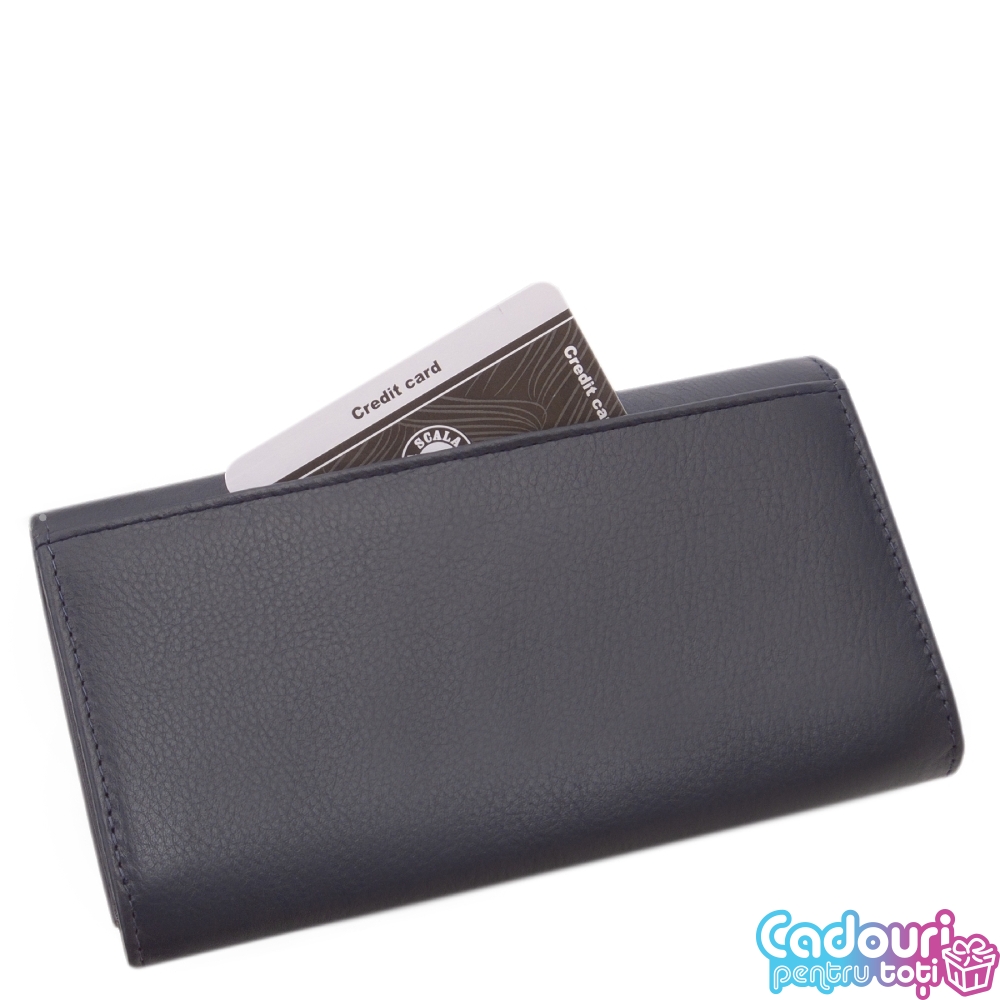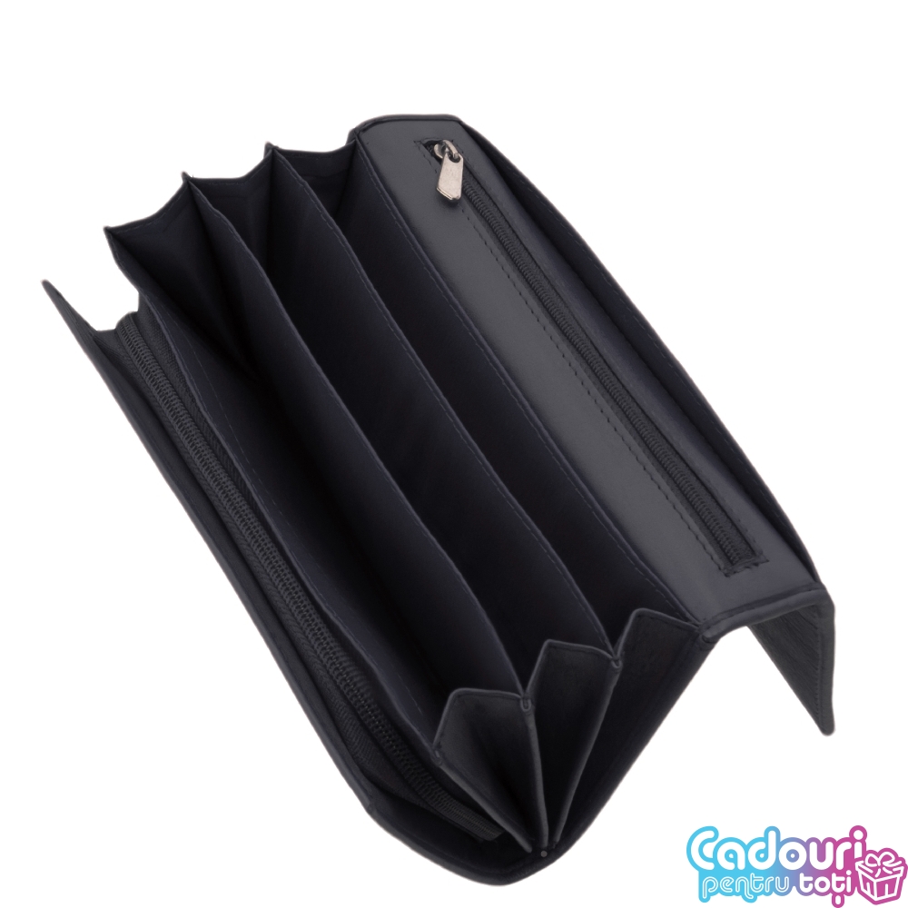 Un portofel premium cu aspect de lux este accesoriul de care are nevoie fiecare damă. A fost confecţionat din cele mai bune materiale pentru a se obţine un portofel cu un design deosebit având o rezistenţă cât mai bună. Este fabricat din piele naturală de bovine. Ambalăm portofelele într-o cutie cadou personalizată.