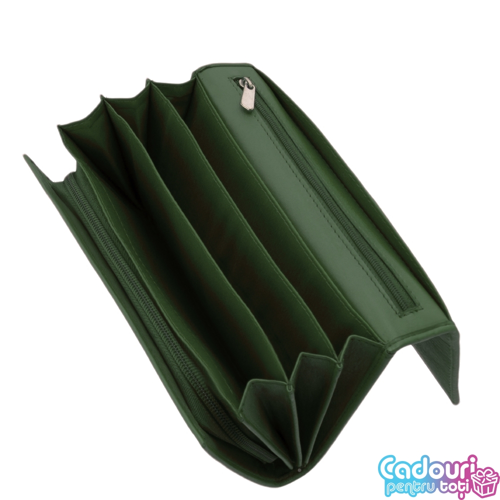 Un portofel premium cu aspect de lux este accesoriul de care are nevoie fiecare damă. A fost confecţionat din cele mai bune materiale pentru a se obţine un portofel cu un design deosebit având o rezistenţă cât mai bună. Este fabricat din piele naturală de bovine. Ambalăm portofelele într-o cutie cadou personalizată.