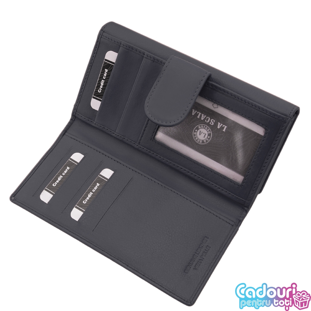 Un portofel premium cu aspect de lux este accesoriul de care are nevoie fiecare damă. A fost confecţionat din cele mai bune materiale pentru a se obţine un portofel cu un design deosebit având o rezistenţă cât mai bună. Este fabricat din piele naturală de bovine. Ambalăm portofelele într-o cutie cadou personalizată.